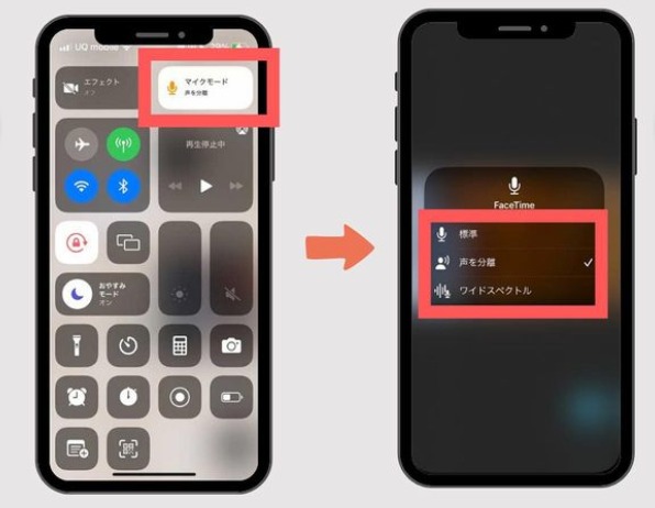 LINE電話で通話中にメニューを開いて、「マイクモード」をタップして「声を分離」を選択します👆🏻
